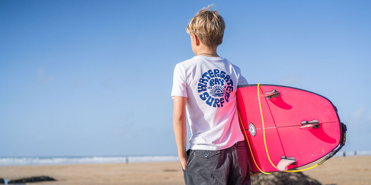 Watergate Bay Surf Co. is committed to sustainability, using organic cotton, recycled polyester, and water-based inks for vibrant, eco-friendly prints. Locally produced, our apparel combines high quality with a lighter footprint, supporting both our community and the environment.